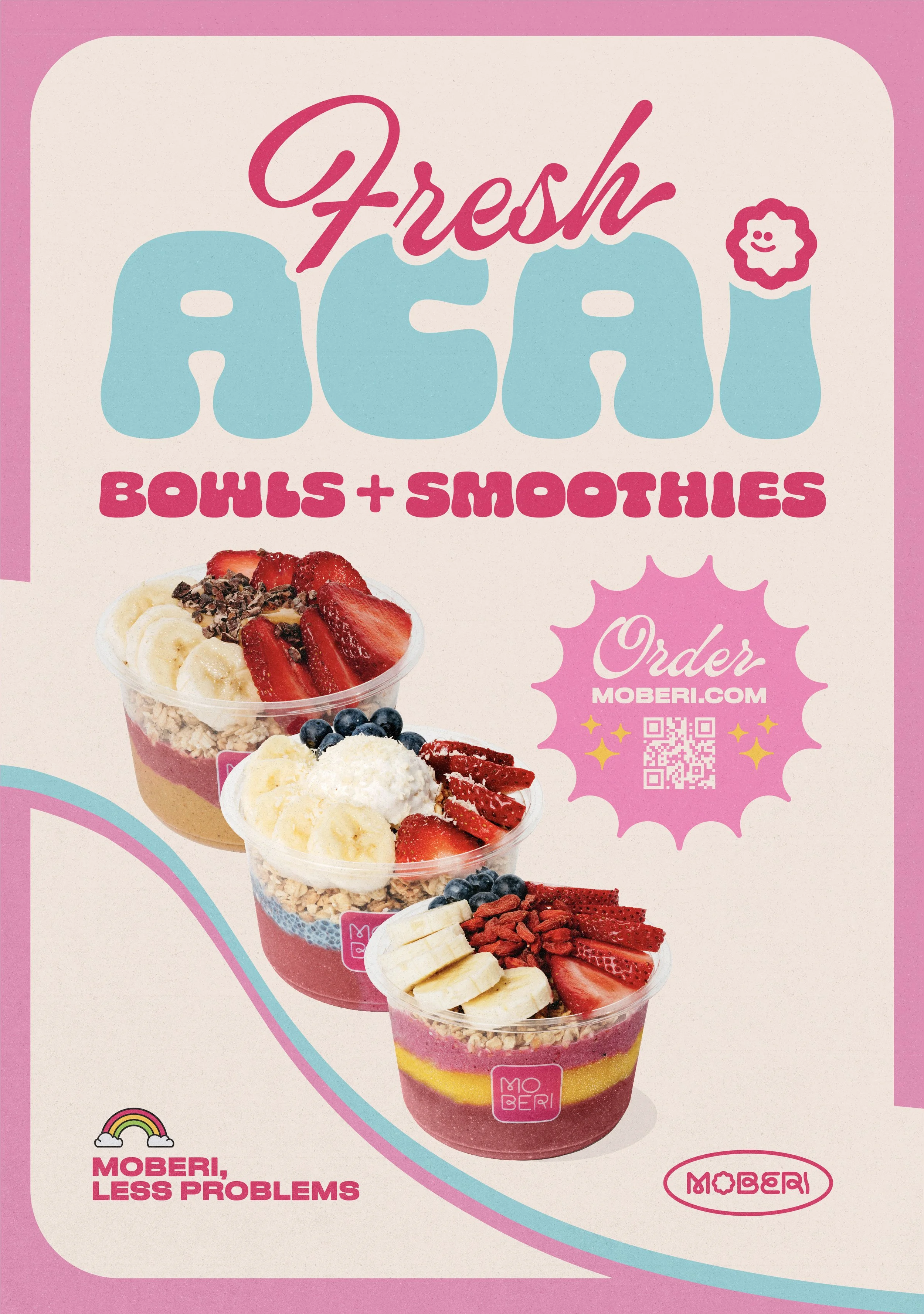 I always knew working with the food industry would be fun, but I never knew it could be THIS fun! It has been a joy to partner with Moberi and Juicebox to develop illustrative posters, signage, and merchandise to market their brand and delicious smoothie bowls.