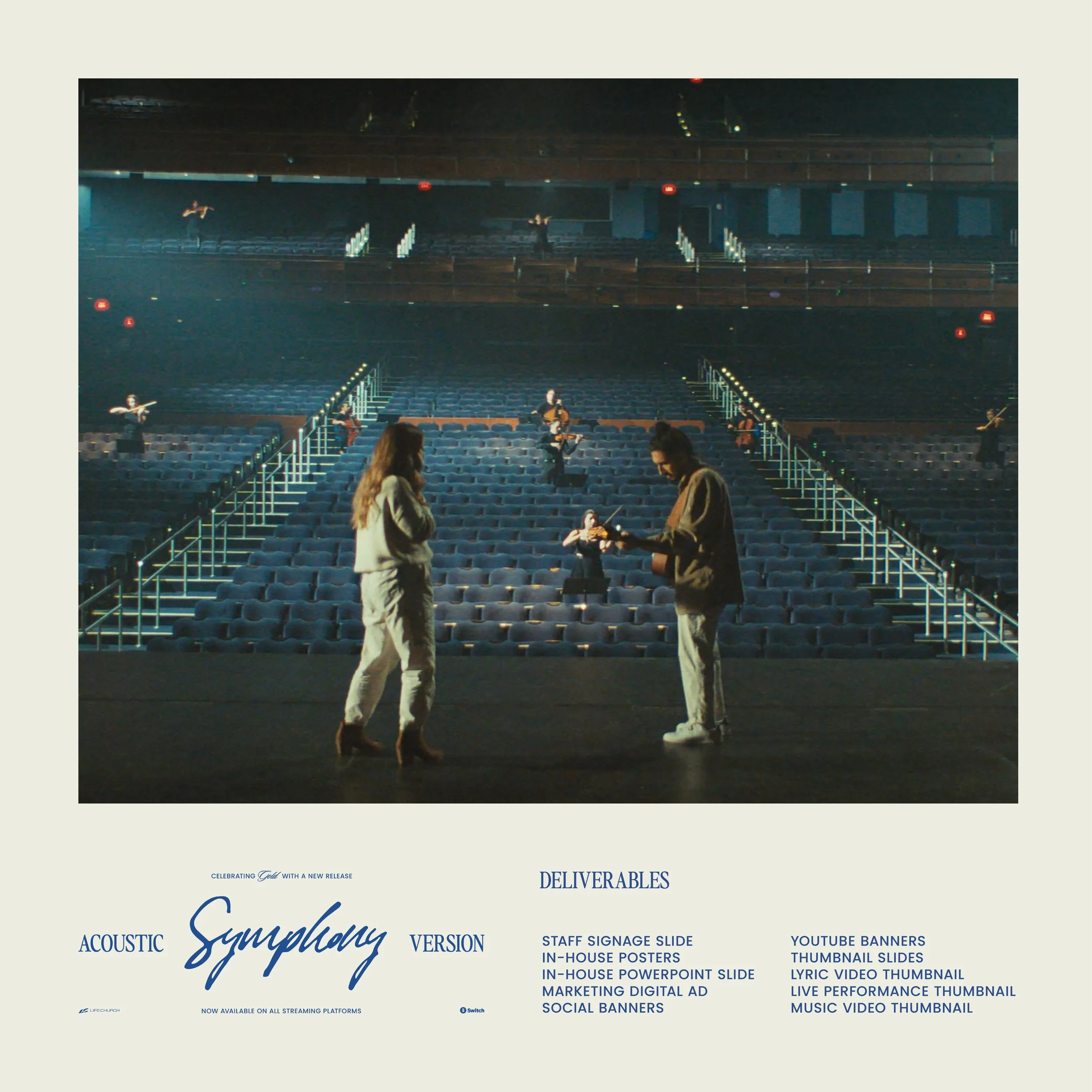 I worked closely with Switch Music to celebrate their successful song, ”Symphony,” reaching gold status. I led the creative direction for this campaign, creating the Symphony Gold marketing brand, designing the cover for the acoustic version of “Symphony,” limited-edition merchandise, and branded materials for social media, websites, and internal platforms.
